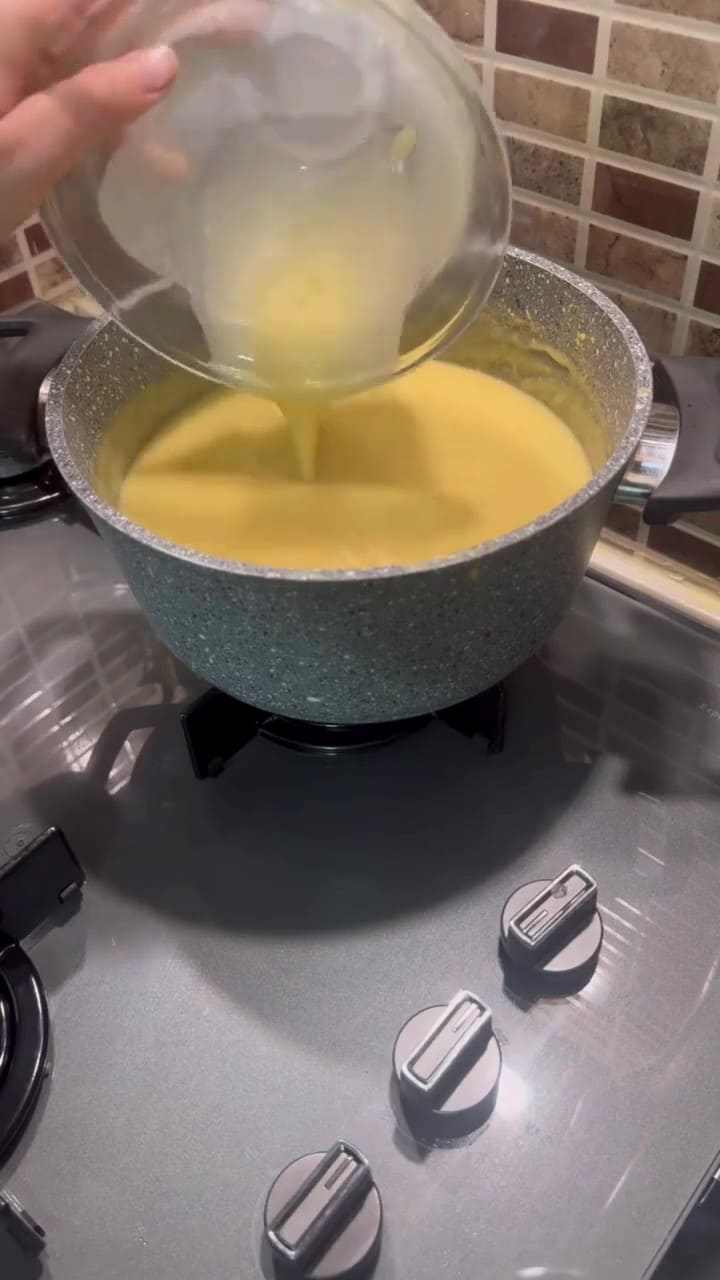 - Slowly pour the tempered mixture into the soup while stirring continuously.