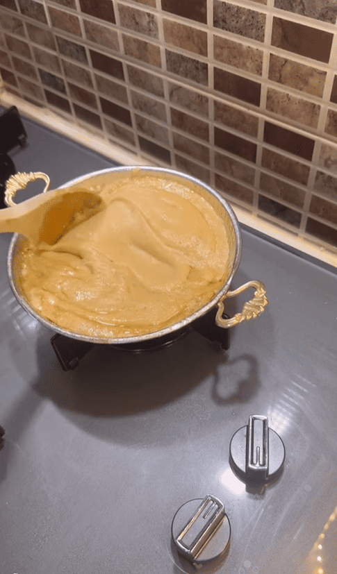 4. Continue stirring as the mixture thickens into a smooth, bubbling paste.