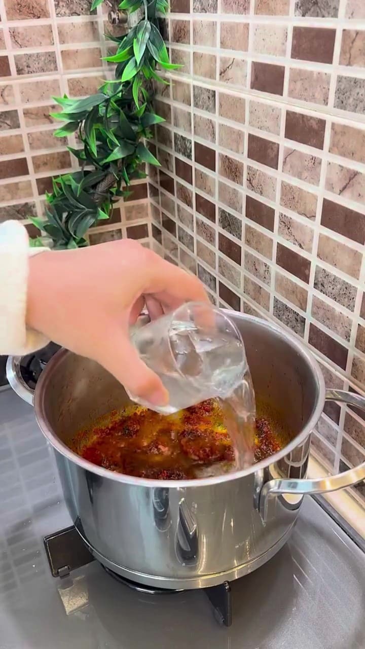 - Stir in the dried mint and red pepper flakes. Add 1 cup of hot water to start the base.
